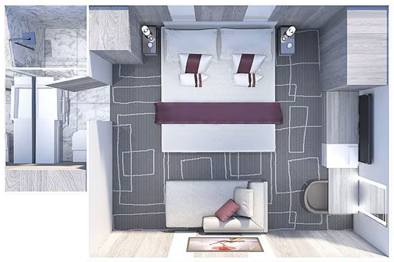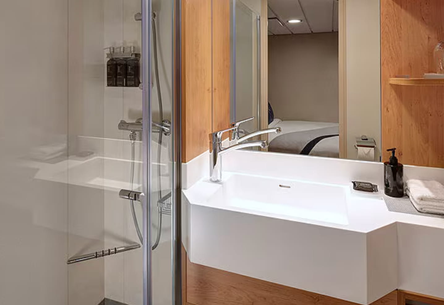 Please note that not all amenities available on the Celebrity Silhouette are included in this charter. Drinks and Wi-Fi are not included in the base price of a cabin on StarVista LIVE cruises. Stateroom images and features are samples only. Actual furniture, fixtures, colors and configurations may vary. All measurements are approximate. Lastly, the configuration of accessible staterooms may vary from the non-accessible stateroom shown here.